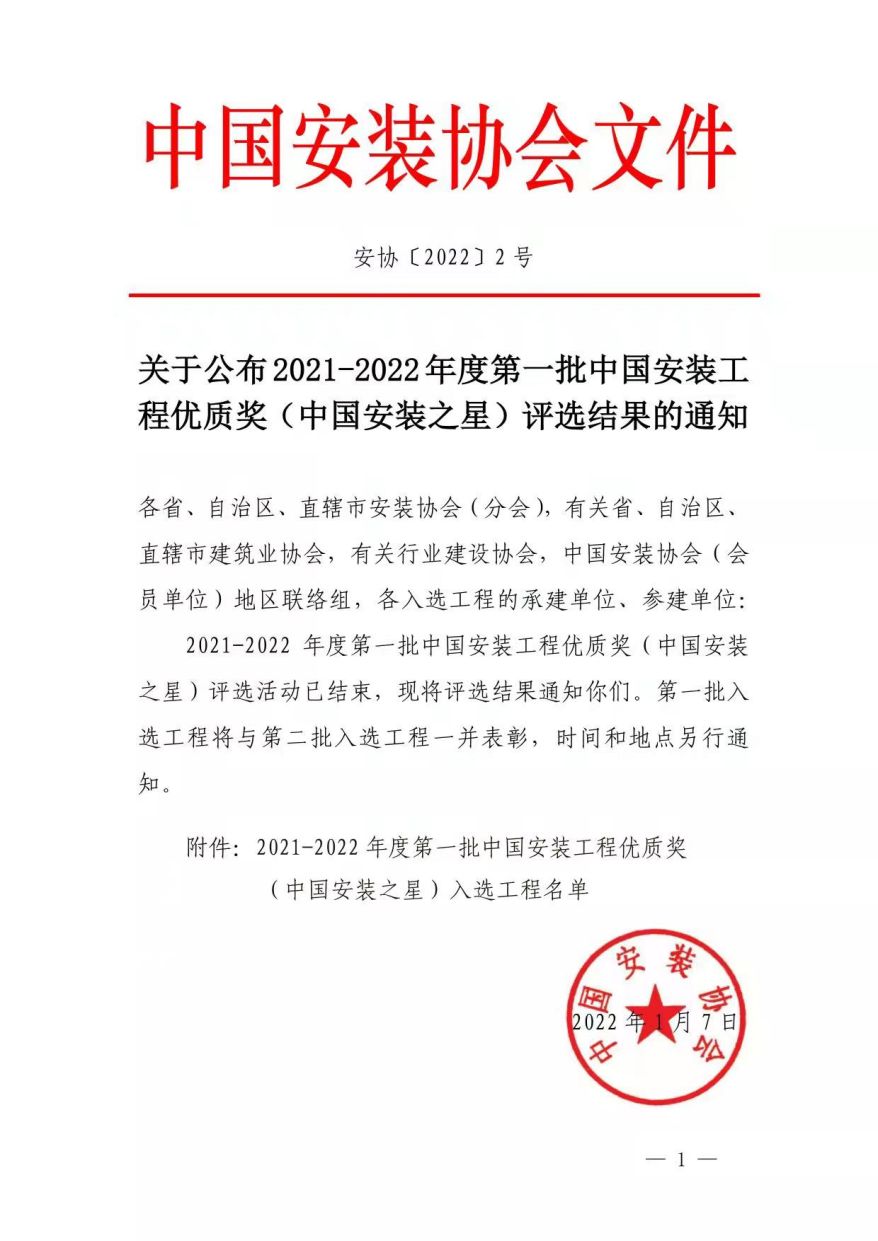 中国安装工程优质奖(中国安装之星)是我国安装行业工程质量***高奖,申报这一奖项的工程应具高质量、新颖、创新、实用性强等特点。获奖工程代表着国内安装工程的先进技术和质量水平,为提高安装行业工程质量水平起到了示范作用,业内人士形象称之为“安装工程的鲁班奖”。