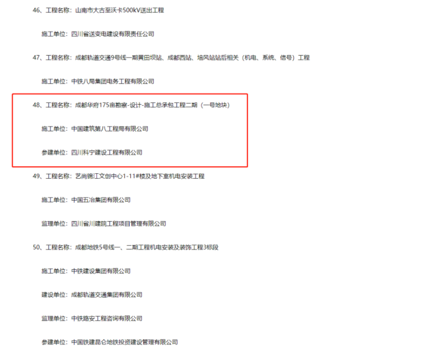 四川科宁建设工程有限公司参建的“成都华府175亩勘察-设计-施工总承包工程二期(一号地块)”工程荣获四川省安装工程优质奖(蜀安杯)